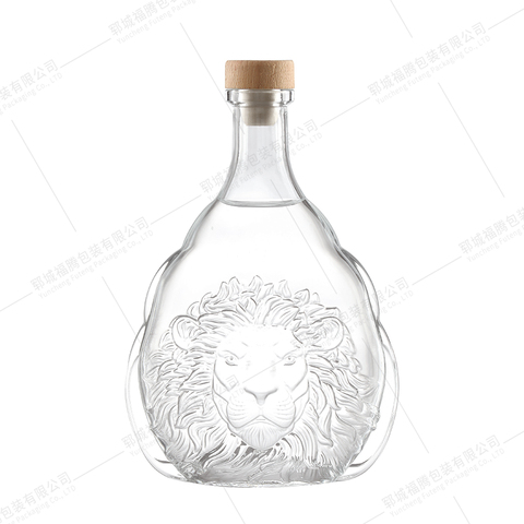 Vendita calda bottiglia di vino in vetro con sigillo di sughero rotondo da 500ml con forma di cilindro a motivo leone
